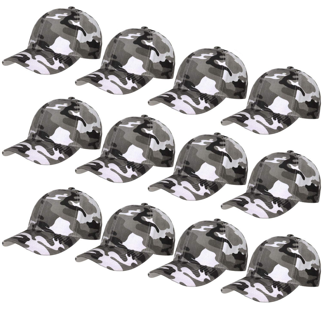 12-Pack Baseball Dad Cap Velcro Strap Adjustable Size - Gray Camo