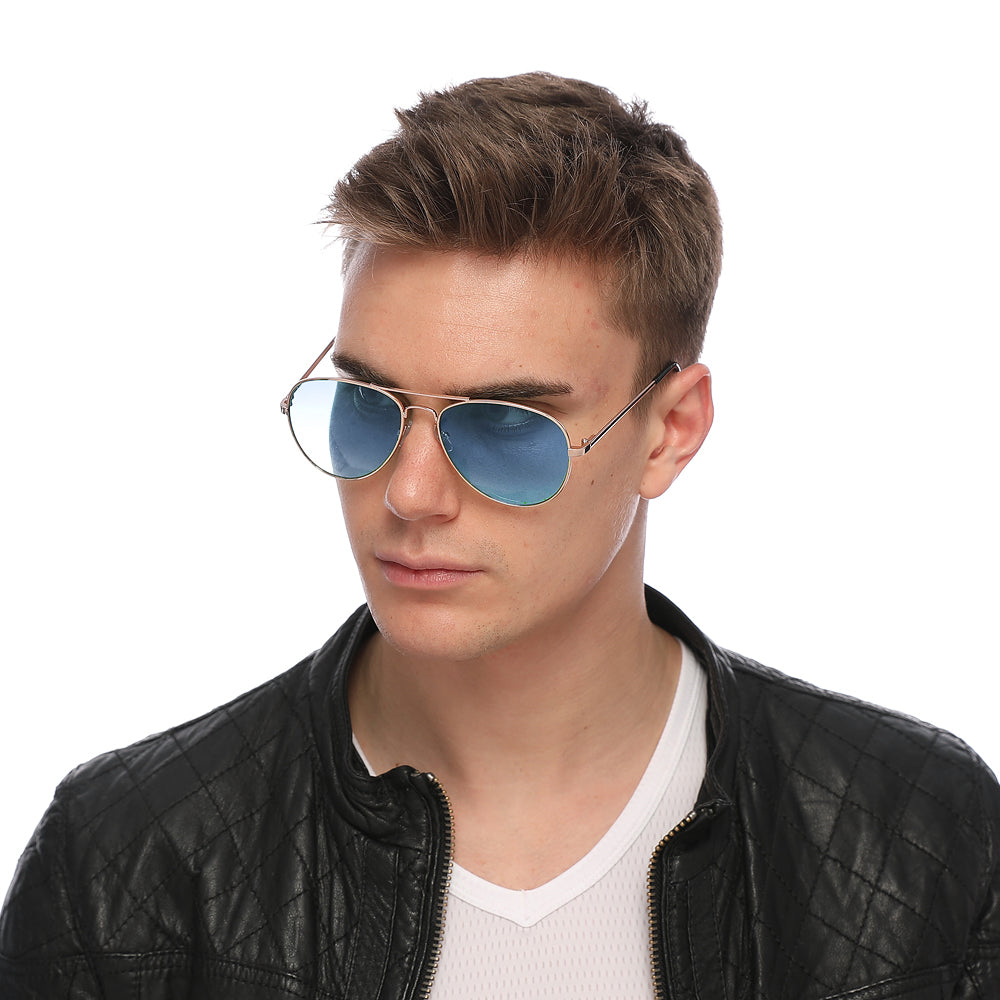 Aviator Sunglasses Classic - Non-Polarized - Gold Frame - Sky Blue