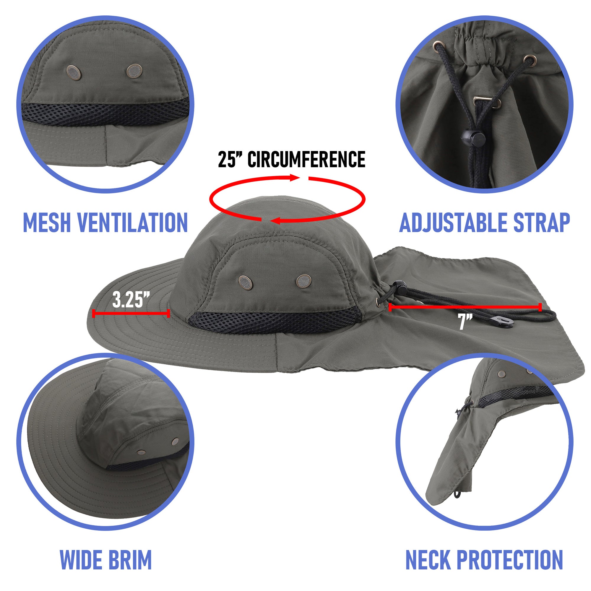 • VERSATILE DESIGN: Wide-brim sun hat with neck flap perfect for outdoor activities like fishing, gardening, hiking, and safari adventures.