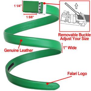 - 100% genuine leather, automatic buckle with 1" wide strap. Easy to put on, and Easy to take off by pull the buckle to release.