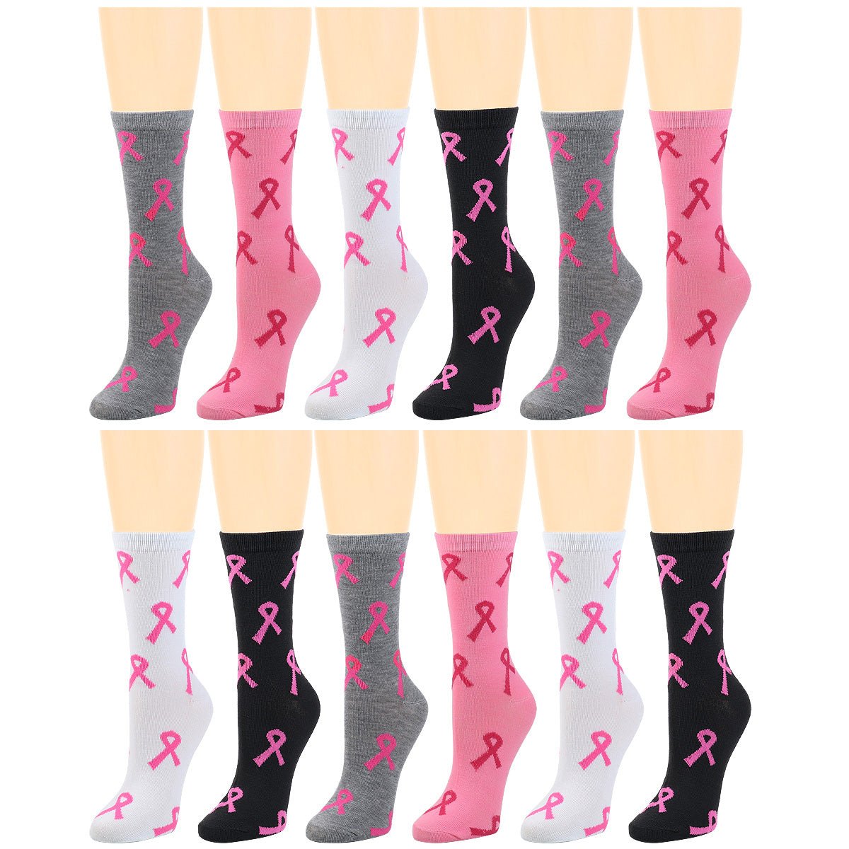 12-Pack Women's Crew Socks Breast Cancer Awareness