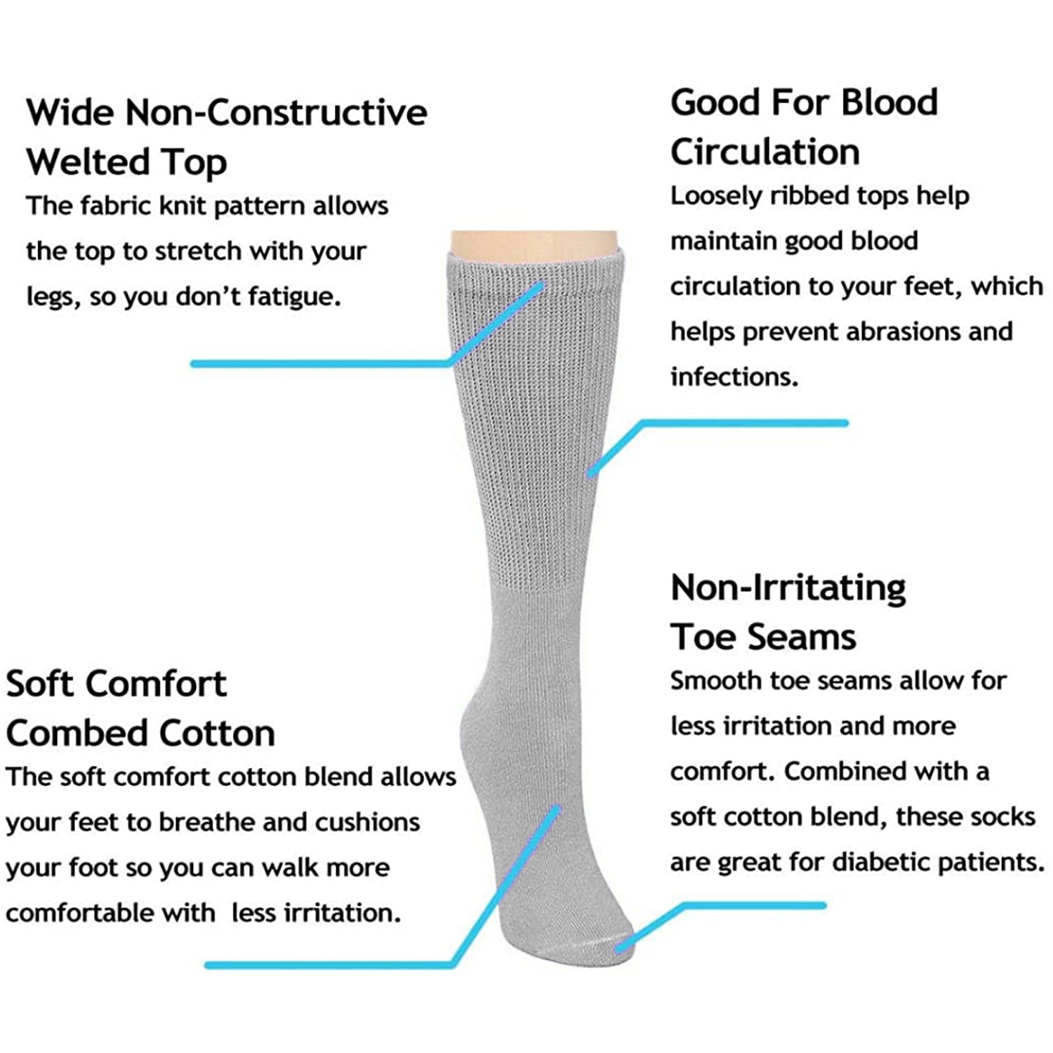 Socks Designed: Loose fitting, non-binding top, increased blood circulation, non-irritating toe seams, and soft comfort combed cotton. The best thing is to help you live healthy and stay pain free.