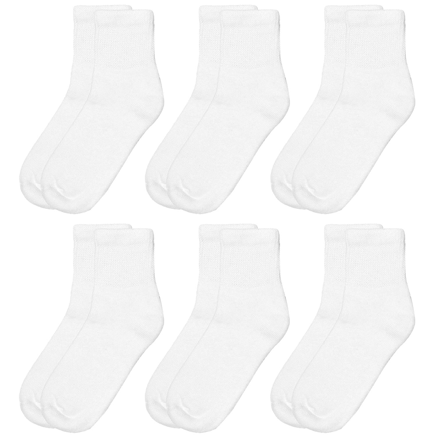 Falari Women Diabetic Socks Diabetes Edema and Circulatory Loose Fitting Cotton Quarter Socks - 6 Pairs White